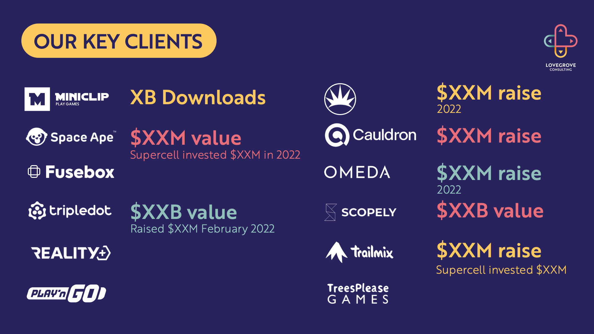 Lovegrove Gaming Industry RecruitersA fun, quick pitch deck for some dynamic gaming recruiters on their way up. The emphasis was on bright colours to match their fun, exciting brand. PowerPoint Pitch Deck back to portfolio View fullsize View fullsize View fullsize View fullsize View fullsize View fullsize View fullsize View fullsize View fullsize View fullsize View fullsize View fullsize View fullsize View fullsize View fullsize View fullsize View fullsize View fullsize View fullsize View fullsize View fullsize View fullsize